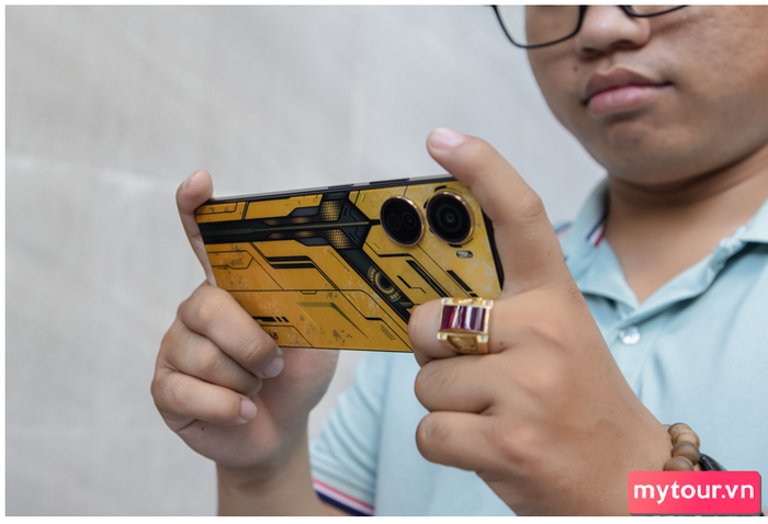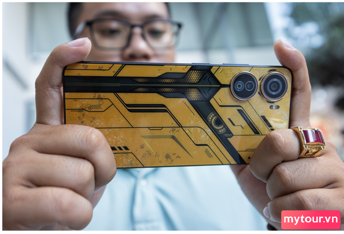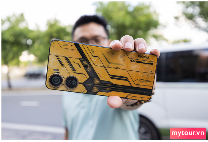 Phiên bản màu vàng của Nubia Neo với họa tiết robot độc đáo, tạo nên điểm nhấn trong thế giới điện thoại gaming.