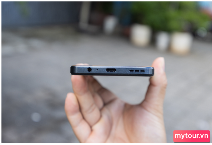 Ở cạnh dưới, bạn sẽ thấy dải loa, cổng sạc USB Type-C, mic và giắc âm thanh 3.5mm.