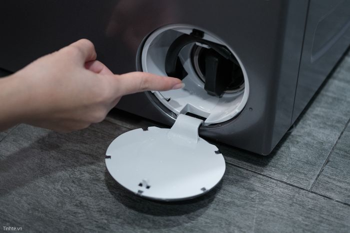 Bộ lọc cặn của máy giặt lồng ngang được đặt ở góc dưới chân máy. Vị trí này rất dễ bị bẩn, và thường chúng ta ít để ý đến.