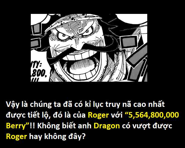 Kỉ lục truy nã cao nhất được tiết lộ là của Roger với '5,564,800,000 Berry'. Liệu Dragon có vượt qua được Roger không nhỉ?