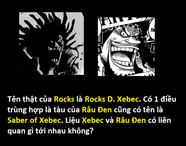 Tên thật của Rocks là Rocks D. Xebec. Một điều kỳ lạ là tàu của Râu Đen cũng có tên là Saber of Xebec. Liệu Xebec và Râu Đen có liên quan gì đến nhau không?