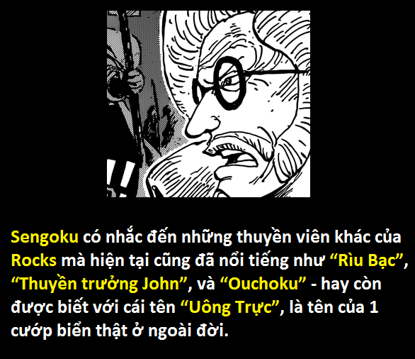 Sengoku đã đề cập đến những thuyền viên khác của Rocks, những người hiện nay cũng nổi tiếng như 'Rìu Bạc', 'Thuyền trưởng John', và 'Ouchoku' - hay còn gọi là 'Uông Trực', là tên của một cướp biển thực sự trong thế giới thực.