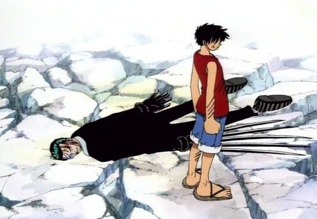 Sau đó, Zoro đến cứu cả hai và bị đánh. Họ phải trở về thị trấn để Zoro hồi phục sức khỏe. Tuy nhiên, Mohji tìm đến và họ phải đánh nhau với Luffy. Zoro tỉnh dậy và cùng Luffy đánh Buggy. Sau cuộc chiến, họ phải ra khơi gấp vì bị dân làng rượt.
