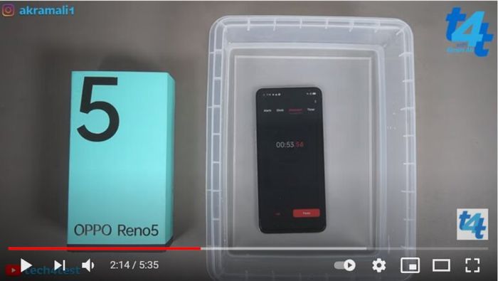 Theo một thử nghiệm trên kênh youtube Tech4Teach, sau khi đặt Oppo Reno5 vào nước trong 60 giây, thiết bị vẫn hoạt động tốt với màn hình, âm thanh, sạc pin, và camera. Cảm biến vân tay trên màn hình vẫn nhạy, âm thanh rõ ràng, và sạc pin diễn ra trơn tru.