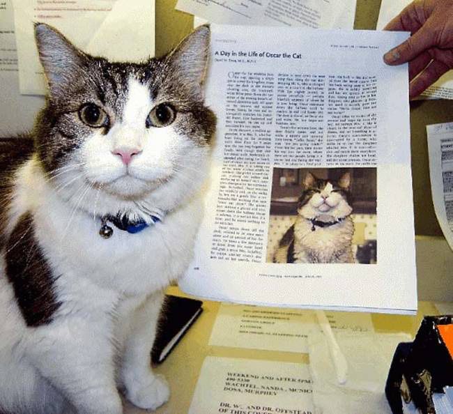 Oscar là một trong những chú mèo nổi tiếng nhất thế giới sau khi một bài viết của bác sĩ lão khoa David Dosa được đăng trên Tạp chí Y học New England vào năm 2007. Trong bài viết, bác sĩ Dosa đã kể lại cuộc đời kỳ lạ của chú mèo Oscar qua hơn 10 năm sống tại trung tâm điều dưỡng.