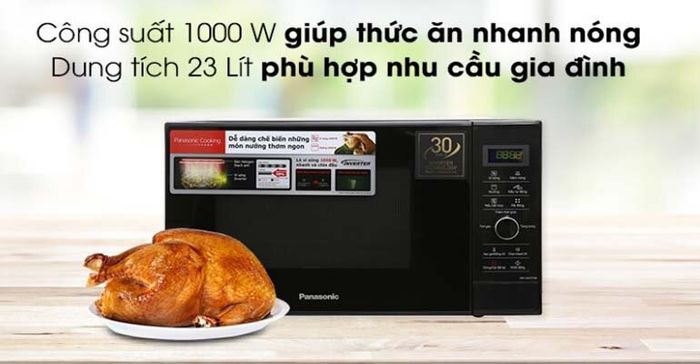 The Panasonic NN-GD37HBYUE has a microwave and grilling power of up to 1000W, convenient for cooking evenly and quickly while ensuring deliciousness. Additionally, Panasonic has been very successful in developing a rapid defrosting feature on the Panasonic NN-GD37HBYUE, helping you save more time instead of waiting for the food to thaw completely before cooking. And finally, the self-adjusting time function helps you be more proactive about time for other activities besides cooking.