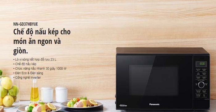 Furthermore, the Panasonic NN-GD37HBYUE is integrated with highly advanced Inverter technology, ensuring high heating power multiple times higher than conventional ones. Thanks to this, microwave energy quickly cooks food, combined with the grilling function to make food cooked golden and crispy.