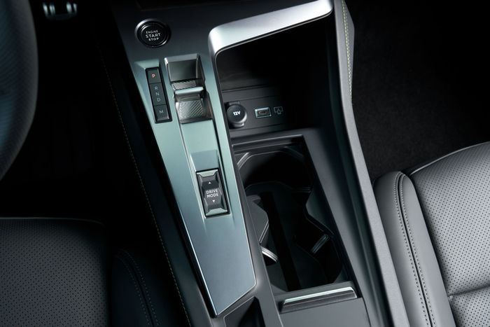 Khu vực điều khiển trung tâm có thiết kế mới, với các nút điều khiển chế độ lái và phanh tay được tích hợp vào nút gạt điện tử, cùng với khay đựng ly nước có nắp đậy.
