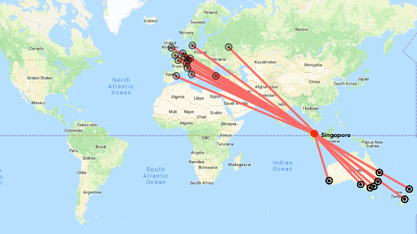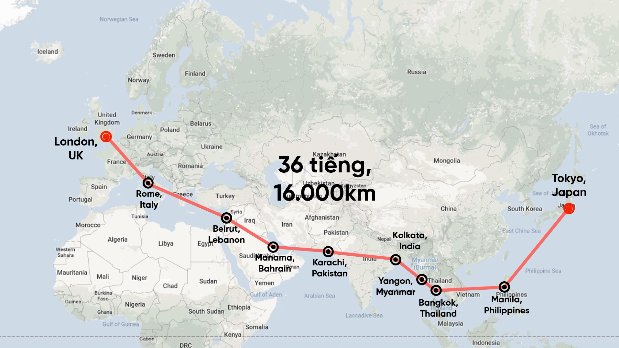 Vào những năm 1950, BOAC, tiền thân của British Airways, đã bay từ London đến Tokyo với nhiều điểm dừng. Để đi từ London đến Tokyo qua Rome, Beirut, Bahrain, Karachi, Kolkata, Yangon, Bangkok và cuối cùng là Manila mất ít nhất 36 tiếng và có thể lên đến 88 tiếng so với máy bay sử dụng động cơ cánh quạt.