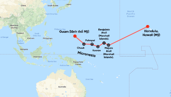 Hiện tại, tuyến bay áp dụng thương quyền 8 phổ biến nhất là Island Hopper của United Airlines. Tuyến bay này bắt đầu từ Honolulu của Hawaii và đi qua các quốc đảo ở Thái Bình Dương, bao gồm Micronesia và quần đảo Marshalls đến đảo Guam. Tổng thời gian của hành trình này là 16 tiếng. Đây là tuyến bay áp dụng thương quyền 8 do United Airlines thực hiện các chuyến bay nội địa giữa các đảo thuộc quần đảo Marshalls và Micronesia.