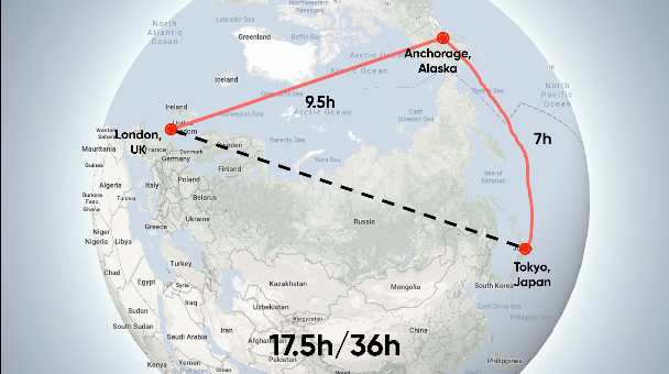 Sau khi các hãng hàng không Scandinavia mở đường bay tới bờ Tây của Mỹ và quá cảnh ở Bắc Cực, các hãng trong khu vực đã làm theo. Nhờ sở hữu các loại tàu bay có tầm bay lớn hơn, BOAC đã bay từ London tới Anchorage (Alaska) trong 9 tiếng rưỡi, dừng 1 tiếng để tiếp nhiên liệu, trước khi bay tiếp 7 tiếng đến Tokyo. Thời gian di chuyển bây giờ là 17.5 tiếng, bằng một nửa so với trước đó.