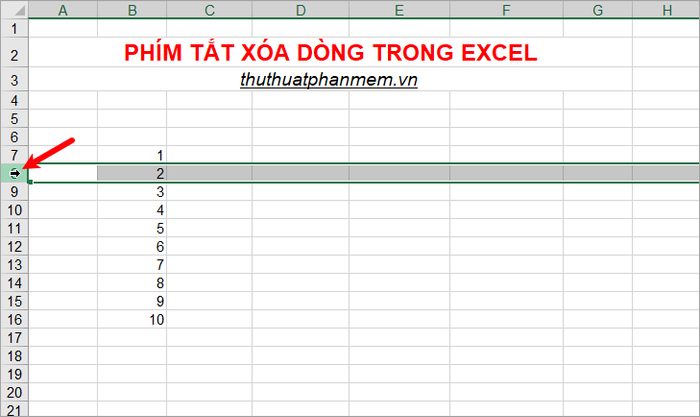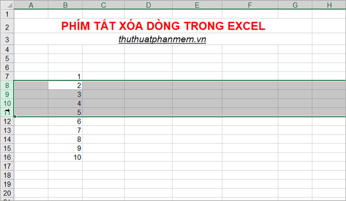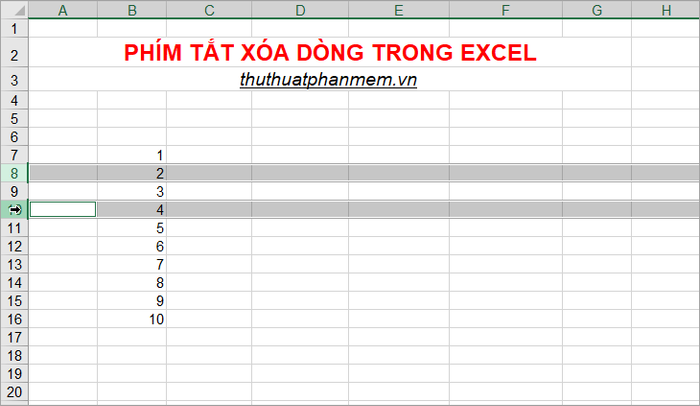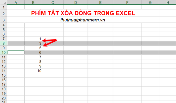 Đối với việc xóa nhiều dòng liên tiếp, giữ phím Shift và chọn ô số đầu tiên của mỗi dòng.