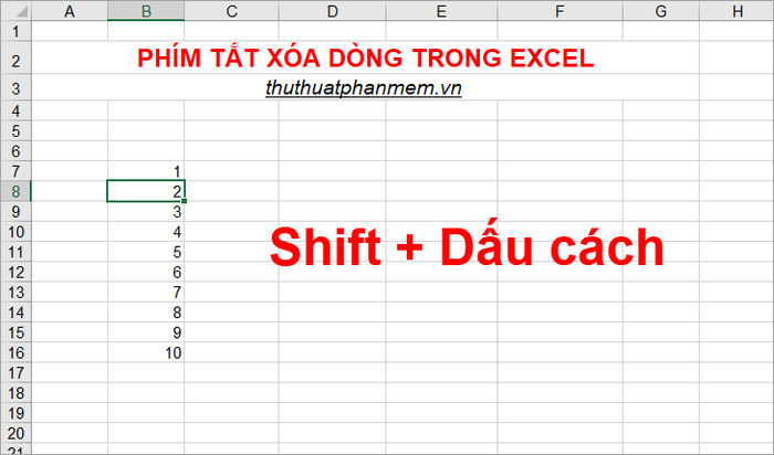 Hoặc bạn có thể nhanh chóng chọn dòng chứa ô đang chọn và bấm đồng thời tổ hợp phím Shift + Dấu cách.