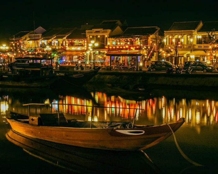 Hội An thu hút bởi vẻ trầm lắng và thơ mộng, đặc biệt là khi đêm buông xuống. Phố cổ trở nên quyến rũ hơn bao giờ hết với ánh đèn lồng lung linh treo trước những ngôi nhà cổ kính. Khung cảnh yên tĩnh và thanh bình của sông Hoài khiến Hội An trở nên lộng lẫy và trang hoàng.