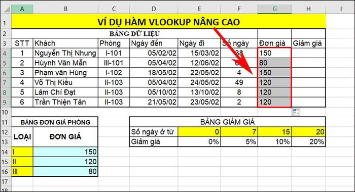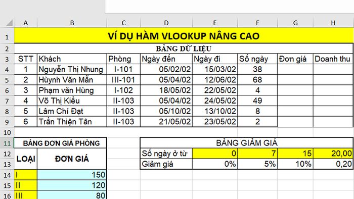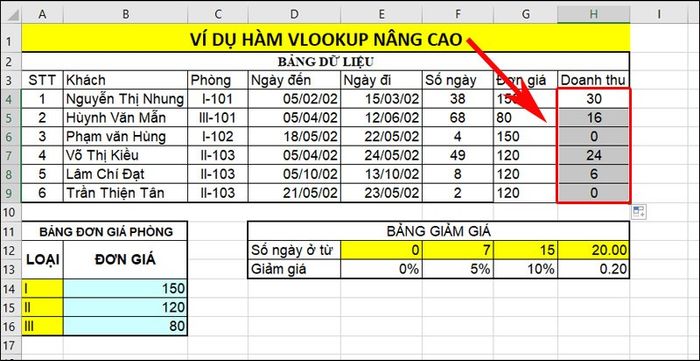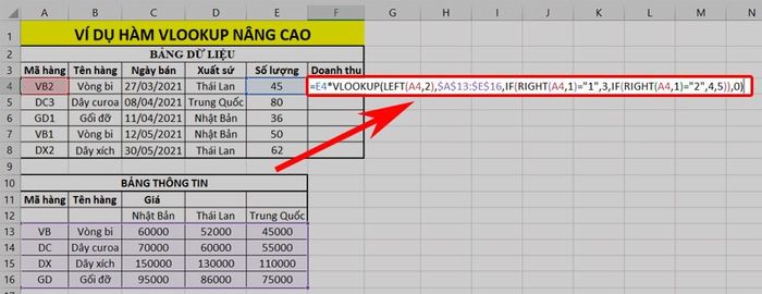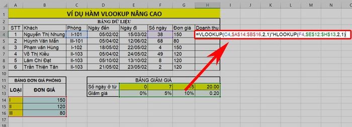 Ví dụ về hàm VLOOKUP kết hợp nhiều hàm