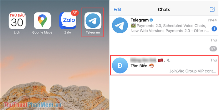 Bước 1: Mở ứng dụng Telegram và chọn nhóm bạn muốn xem nội dung.