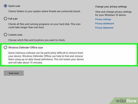 Thực hiện chế độ quét ngoại tuyến của Windows Defender.