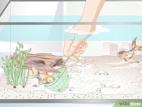 Vớt Các Chất Hữu Cơ Dư Thừa Ra Ngoài Bể - Các chất hữu cơ bị thối rữa là nguyên nhân quan trọng khiến nồng độ amoniac tăng cao trong bể cá. Bạn có thể sử dụng một chiếc vợt cá để vớt tất cả những gì dư thừa ra ngoài (trừ cá và thực vật sống) để làm giảm nồng độ amoniac trong bể.