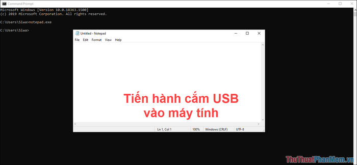 Bước 2: Khi Notepad được mở, đảm bảo rằng USB đã được cắm vào máy tính. Hãy kiểm tra lại trước khi khôi phục dữ liệu.