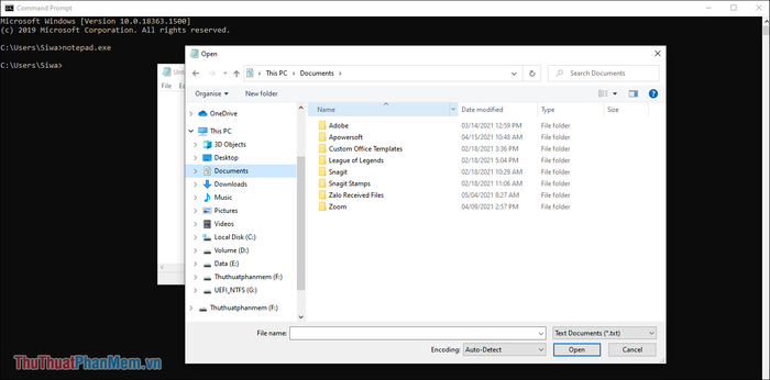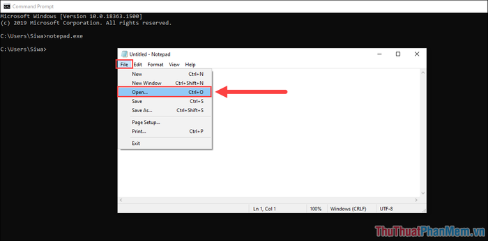 Bước 1: Trong Command Prompt, gõ lệnh sau và nhấn Enter để mở Notepad.