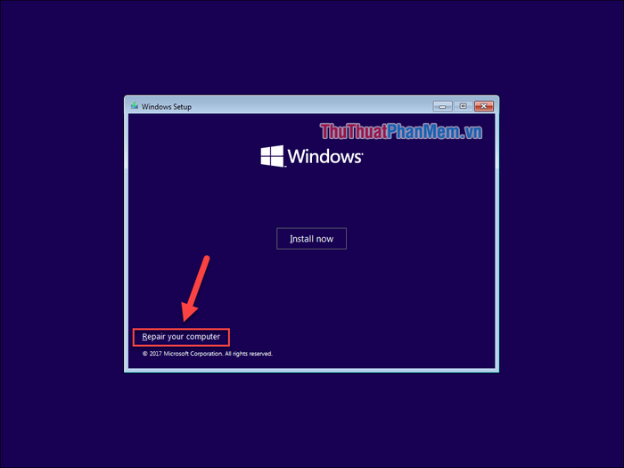Bước 3: Sau khi tạo xong USB, cắm nó vào máy tính và khởi động lại để vào chế độ cài đặt Windows. Tại đây, bạn chọn Repair your computer để truy cập vào các tùy chọn sửa chữa.
