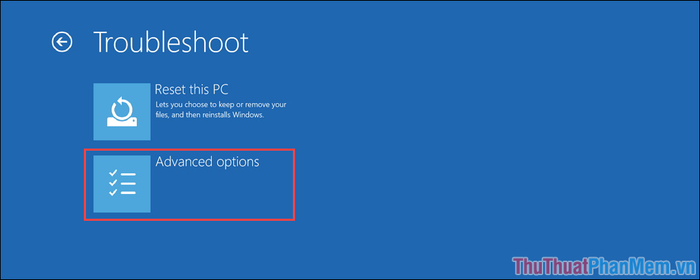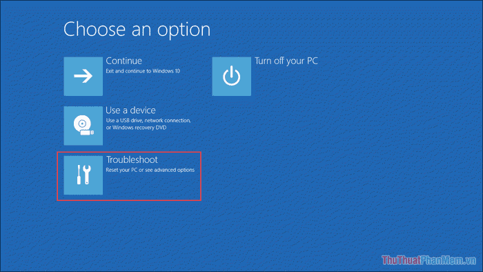 Bước 4: Khi đã vào chế độ Recovery, chọn Troubleshoot để mở bộ công cụ sửa chữa Windows.