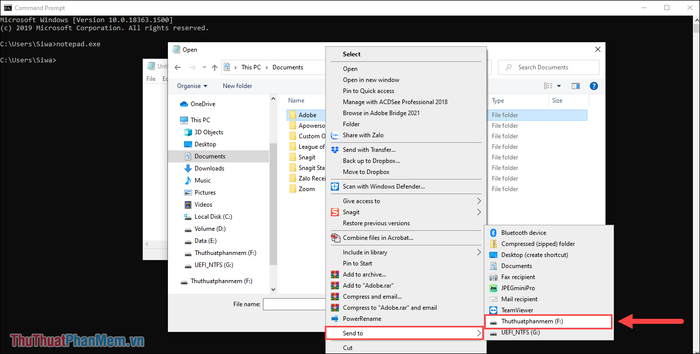 Bước 5: Sau khi xác định thư mục và nội dung cần khôi phục, hãy Click chuột phải vào thư mục và chọn Send to => Tên USB.