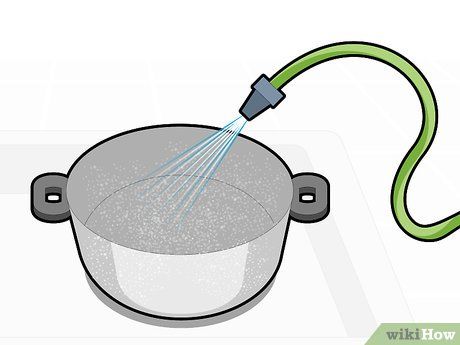 Rửa bề mặt nhôm. Bắt đầu quá trình làm sạch nhôm bị ô-xi hóa bằng cách rửa với nước để loại bỏ bụi bẩn hoặc mảng bám trên bề mặt. Nếu muốn làm sạch nồi hoặc chảo nhôm, bạn có thể rửa chúng dưới vòi nước mạnh. Đối với việc vệ sinh bánh xe bằng nhôm hoặc các vật dụng khác, bạn cần dùng khăn ướt để lau hoặc dùng vòi xịt nước để rửa sạch.