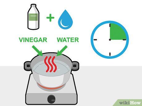 Sử dụng giấm. Khi vệ sinh nồi nhôm, bạn cần đổ nước vào nồi sau đó thêm 2 thìa canh (khoảng 30ml) cho mỗi lít nước. Đun nước và giấm đến khi sôi rồi để hỗn hợp tiếp tục sôi trong 15 phút, sau đó đổ bỏ nước. Bạn cần thực hiện bước này vài lần để làm sạch phần bị ô-xi hóa.