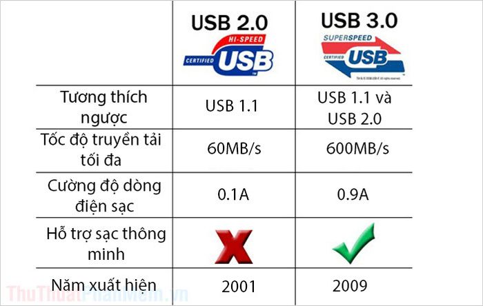 Khác biệt giữa USB 2.0 và USB 3.0 là rất đáng kể, với tốc độ truyền tải lên đến 10 lần nhanh hơn – lên tới 600MB/s. Điều này có nghĩa là tốc độ Copy của USB sẽ được tăng lên 10 lần (trong điều kiện thích hợp).
