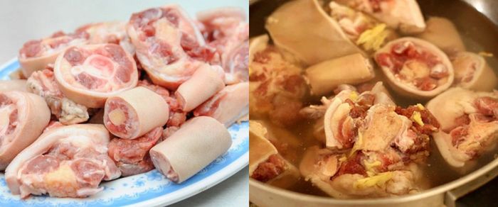 Bước 1: Đuôi bò sau khi mua về, rửa qua nước và chặt thành những khúc vừa ăn, sau đó nấu trong nước nóng khoảng 15 phút. Đổ ra rổ và rửa sạch lại bằng nước lạnh.