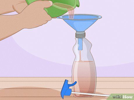 Rót hỗn hợp vào bình xịt. Sử dụng phễu khi rót vào bình xịt để tránh tràn. Xịt dung dịch này trong vườn khi cần để loại bỏ dịch hại và động vật ăn lá cây.