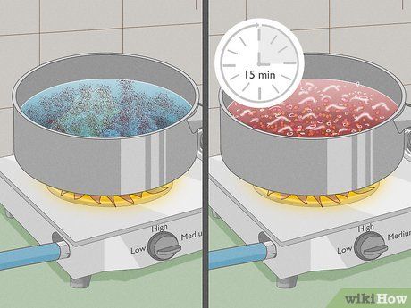 Đun sôi hỗn hợp. Đậy nắp xoong và đun sôi hỗn hợp trên lửa lớn. Khi nước sôi, hãy giảm lửa xuống mức trung bình và tiếp tục đun sôi trong 15 phút. Sau đó, tắt bếp và để xoong sang một bên.
