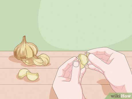 Bóc tỏi. Bóc vỏ bên ngoài của củ tỏi. Tách từng nhánh tỏi và đặt vào một bát kim loại. Đặt một chiếc bát khác cùng kích thước lên trên bát tỏi, giữ chúng chặt lại và lắc mạnh trong 10 giây. Sau đó, lấy bát phủ trên ra và lấy ra các nhánh tỏi đã bóc vỏ.