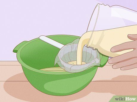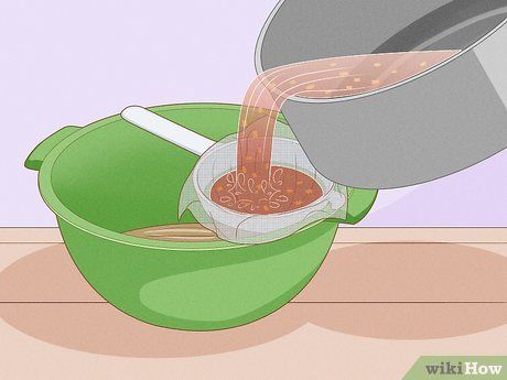 Lọc hỗn hợp. Đổ hỗn hợp vào rổ lót vải đặt trên miệng bát. Bước này loại bỏ mẩu tỏi, hành và ớt, chỉ còn lại chất lỏng có thể xịt.