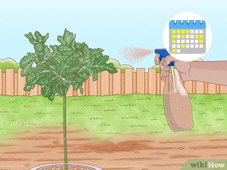Xịt dung dịch lên lá cây vào buổi tối. Cầm bình xịt cách cây khoảng 15-30 cm. Xịt dung dịch lên cả mặt trên và dưới lá cây. Nhiều loại sâu bọ thích ẩn nấp ở mặt dưới lá cây, và nấm mốc bột thường phát triển ở đó.