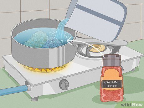 Thêm nước và ớt cayenne vào xoong. Bạn cũng có thể sử dụng ớt đỏ khô thay cho ớt cayenne, hoặc ớt tươi như ớt jalapeño hoặc habanero nếu muốn. Nếu dùng ớt tươi, bạn cần băm nhỏ trước khi cho vào xoong.