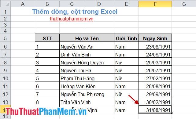 Lưu ý: Hàng sẽ được thêm phía trên ô bạn chọn, còn cột sẽ được thêm bên trái ô bạn chọn. Hãy chọn ô một cách chính xác.