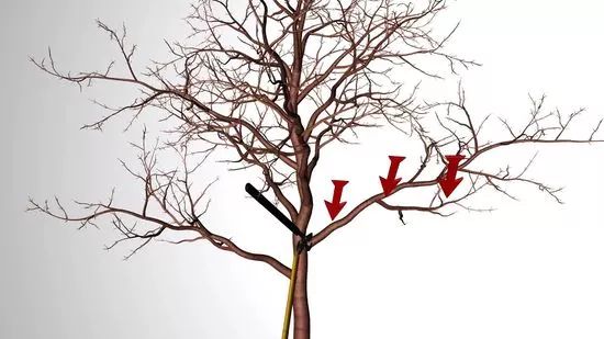 - Góc mọc của các cành tán rất quan trọng. Chúng nên mọc với góc 45-50 độ so với thân cây để tránh gãy dưới trọng lượng của quả. Các cành tán nên tạo thành hình sao hoặc hoa ở trên đỉnh cây.