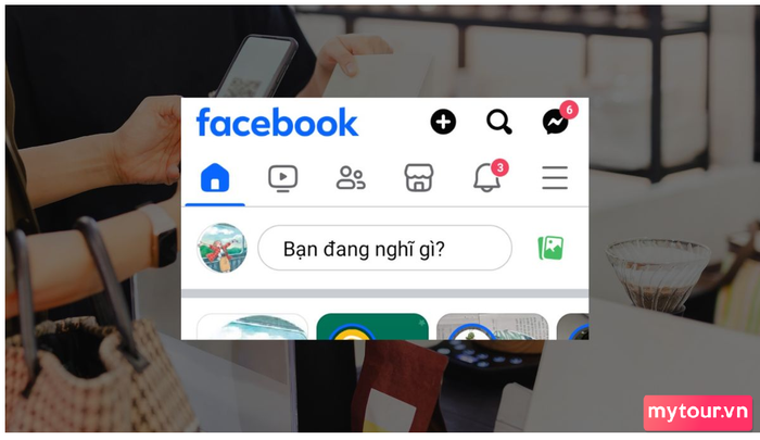Bước 1: Đăng nhập vào tài khoản Facebook mà bạn muốn chia sẻ mã QR. Trên trang chính, chọn biểu tượng tìm kiếm (kính lúp)