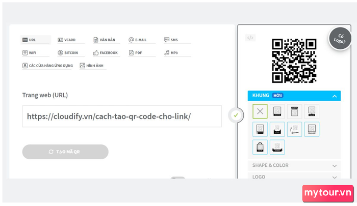 Bước 3: Dán đường link cần tạo mã QR và nhấn 'Tạo mã QR' ở phía dưới. Bạn có thể chỉnh sửa mã theo ý muốn trước khi tải xuống.