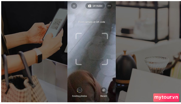 Bước 2: Bạn sẽ chuyển đến giao diện quét mã QR, ở đây hãy chọn Ví QR ở góc trên bên phải để tạo mã QR cá nhân.
