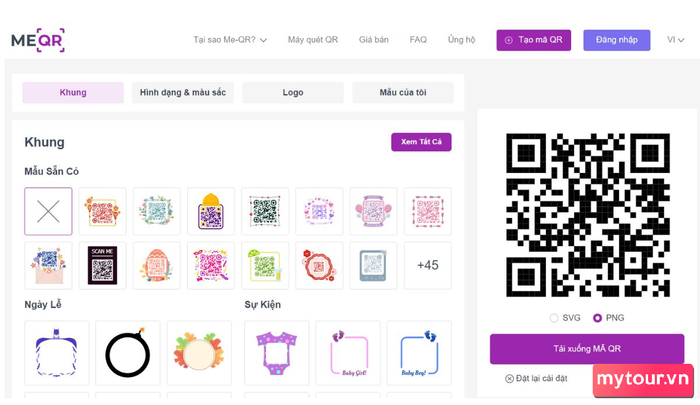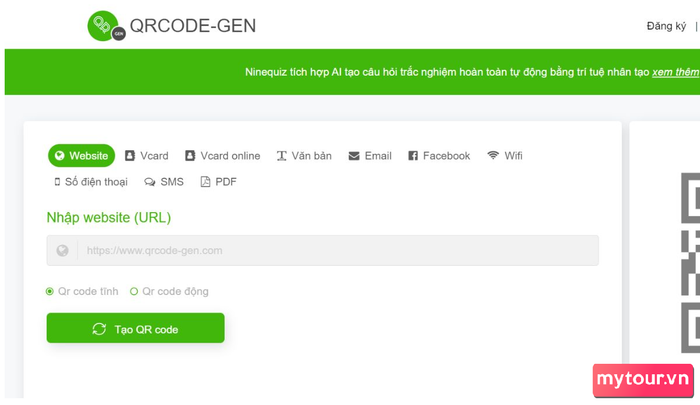 Thực hiện tạo mã QR miễn phí trực tuyến trên trang web MEQR: