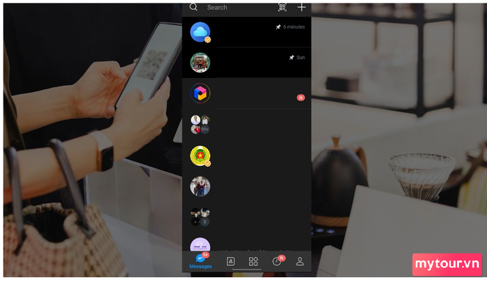 Bước 1: Mở mục Tin nhắn trong ứng dụng Zalo của bạn. Chọn biểu tượng QR ở góc trên bên phải.