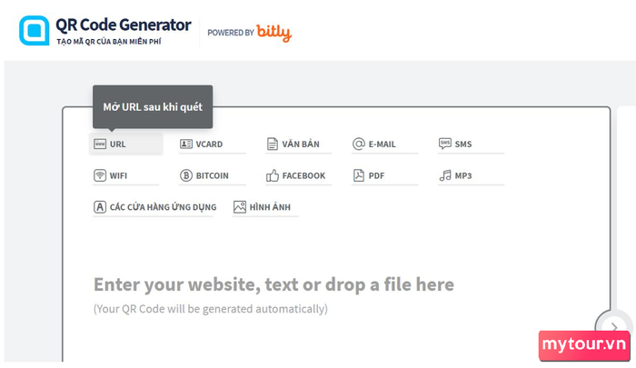 Bước 2: Chọn 'URL' để mở giao diện tạo mã QR qua liên kết.