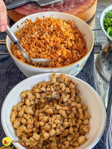 Điểm đặc biệt ở đây là quán có thêm tốp mỡ cho khách, vì quán dùng mỡ để thắng tỏi và sả. Bún mắm không chỉ có hẹ và rau thơm mà còn được điểm thêm tốp mỡ tỏi phi, càng làm tăng thêm hương vị thơm ngon cho tô bún.
