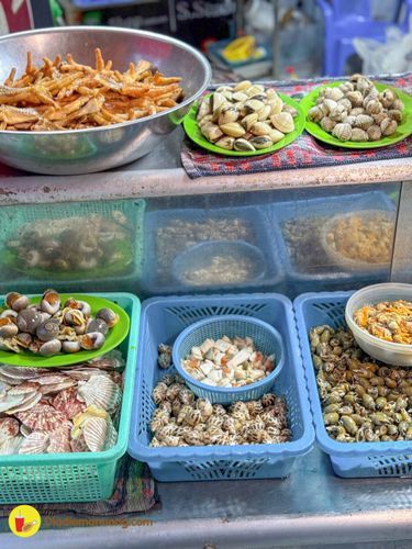 Các loại sò ốc ở đây có giá từ 35k đến 60k/ dĩa. Mình đã gọi Ốc mỡ xào me, Nghêu hấp thái, Ốc bươu nướng tiêu, và Sò mai nướng trứng mỡ hành.