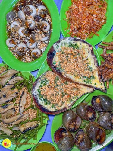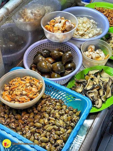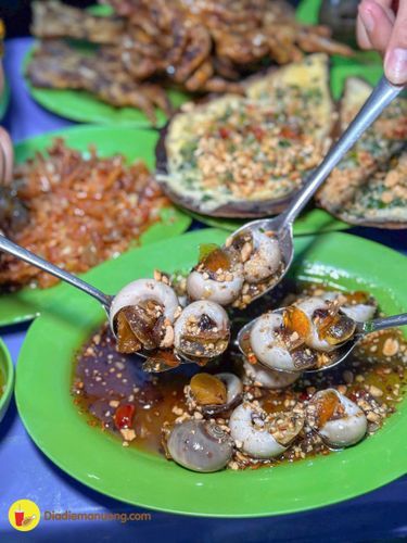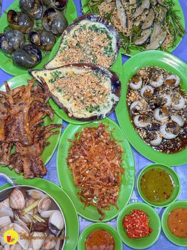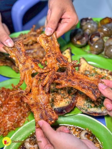 Quán ốc phục vụ nhiều món từ ốc đến các món nhậu, đặc biệt nổi bật với chân gà nướng và khô mực chiên nước mắm.