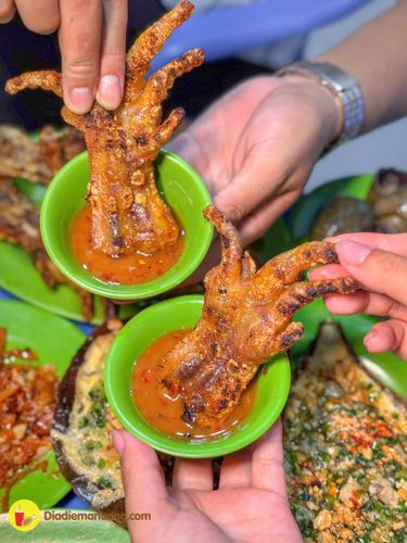 Chân gà nướng có giá 20k/ cặp. Mình thấy quán ướp chân gà thấm gia vị, nướng phần da giòn rụm. Quán còn có nước chấm muối sệt, chấm ốc hay chân gà rất ngon.