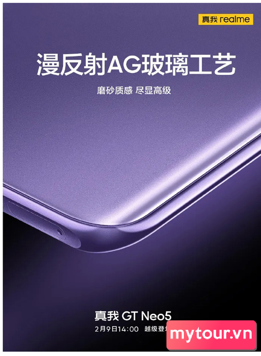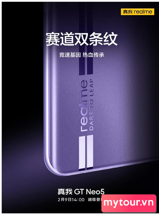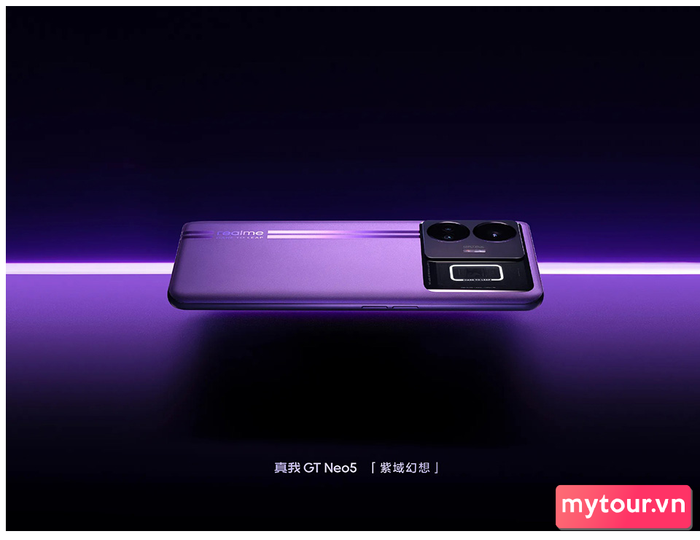 Theo nguồn tin, Realme GT Neo5 5G hứa hẹn nhiều nâng cấp so với phiên bản trước. Máy sẽ có tùy chọn màu tím mới, mặt sau cong với lớp hoàn thiện mờ AG Glass. Hai sọc dọc lớn chạy bên dưới mô-đun máy ảnh. Phía trong có 2 vòng tròn lớn để chứa hệ thống 3 camera và đèn flash LED.